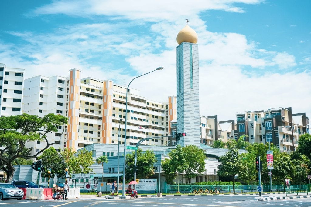 Built in 1983 under the Mosque Building Fund (MBF) scheme, the mosque located at the junction of Tampines Road and Hougang Ave 3, stands out prominently next to high-rise residential flats with its box-like structure and tall minaret. It serves the religious needs of residence in surrounding Hougang area. The mosque had undergone a major upgrading in 2006 which increased its capacity to 2,500 worshippers. It offers daily kindergarten and madrasah classes.
