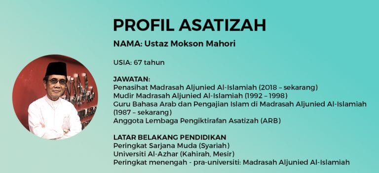Ditanya tentang rahsia di sebalik penglibatannya sebagai tenaga pengajar dalam sektor madrasah yang menjangkaui lebih tiga dekad, Ustaz Mokson berkata tanggungjawab asatizah sebagai pendidik dan pendakwah masyarakat membuat beliau keberatan meninggalkan bidang tersebut.