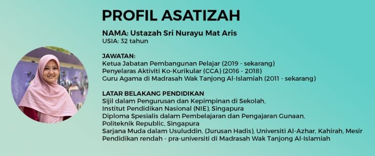 “Keadaan dunia dan Singapura sudah berubah. Madrasah perlu persiapkan pelajar-pelajar bukan sahaja dengan ilmu atau kandungan yang sesuai, tetapi juga dengan kemahiran-kemahiran khas yang diperlukan,” kata Ustazah Sri Nurayu, 32 tahun.